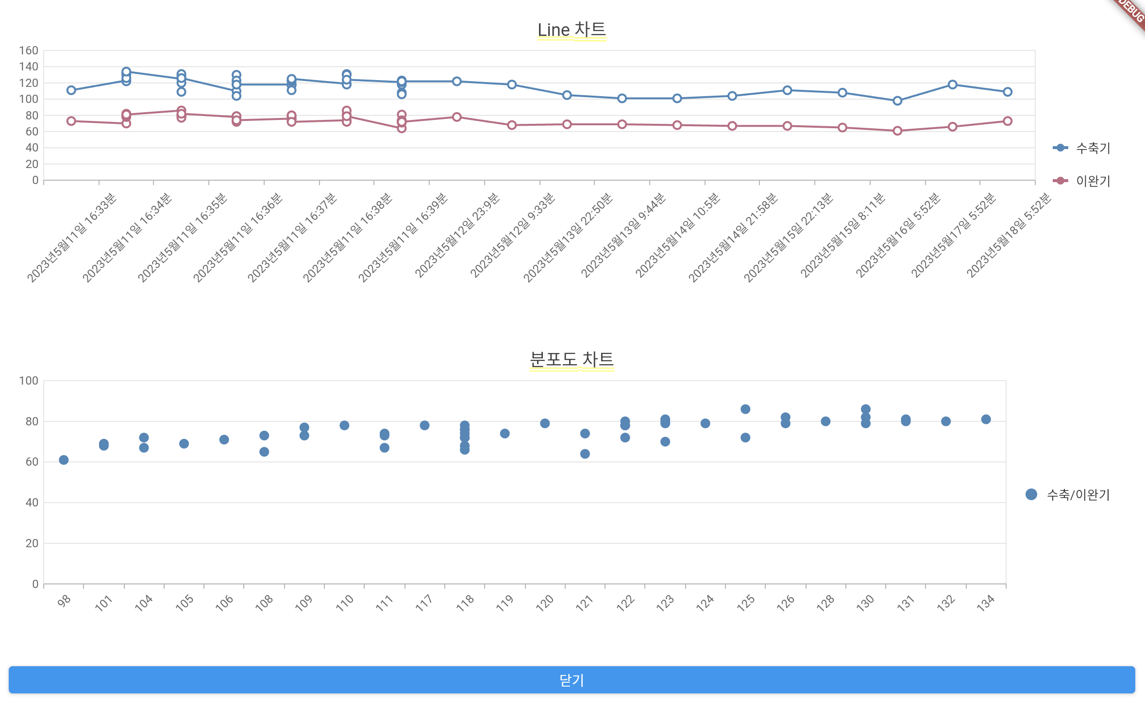 - 라인차트와 분포 차트를 통해 기록목록의 성향을 파악할 수 있다.