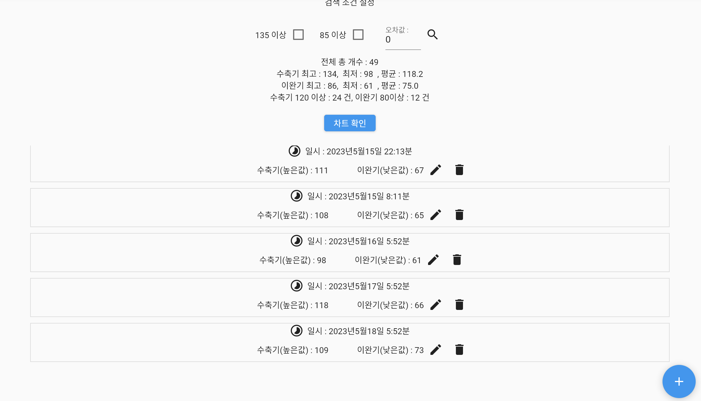 - 입력한 혈압 정보를 수정, 삭제 가능하다.